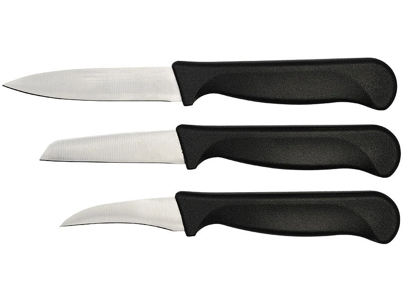 Liegen angenehm in der Hand: Mit diesem 3-teiligen Messerset wird das Gemüse-Schnippeln zum Kinderspiel. Ob zum Schälen, Schneiden oder Garnieren – für jeden Arbeitsschritt haben Sie ab sofort das passende Messer zur Hand.