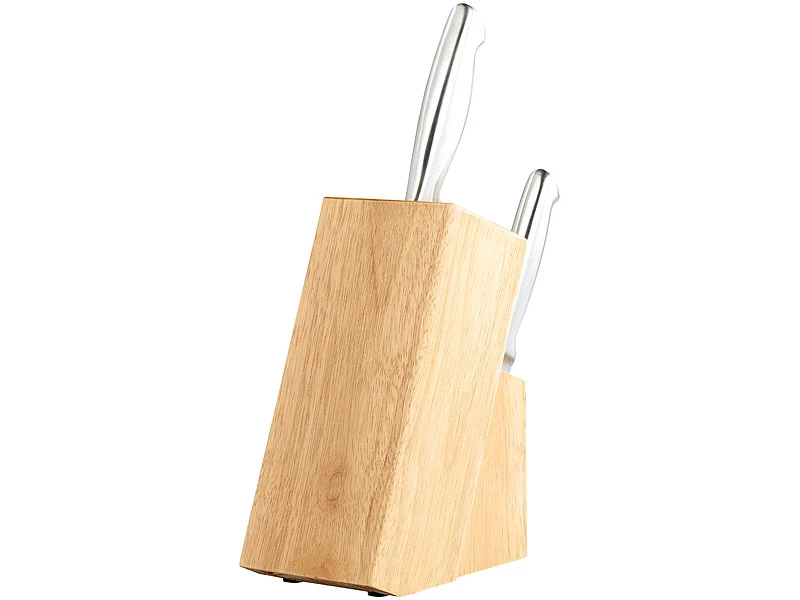 - Rustikaler Messerblock mit Aussparungen für alle Klingenarten