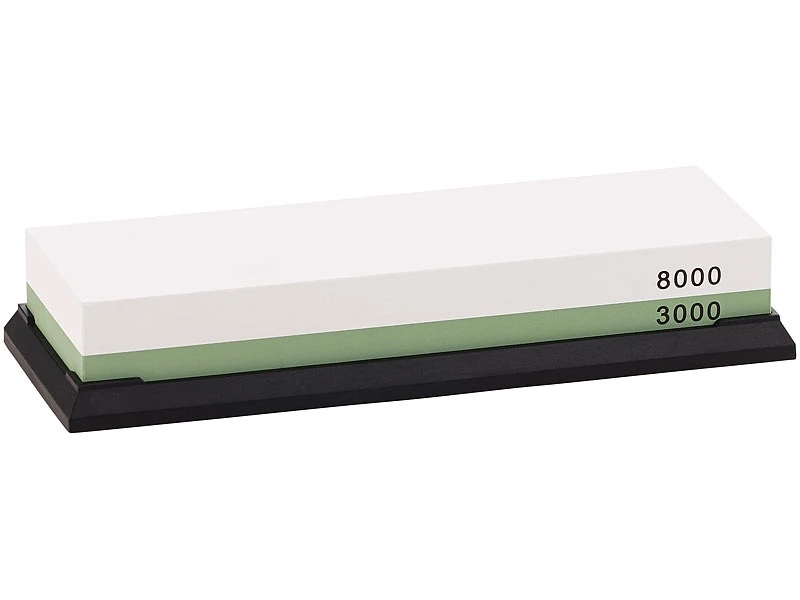 - Körnung 3000: extrafeiner Gebrauchsschliff für Küchen-, Fleisch-, Hackmesser u.v.m. aus Edelstahl, Körnung 8000: Feinschliff für Küchen-, Fleisch-, Hack-, Sushi-, Rasiermesser u.v.m. mit Edelstahl-, Damaszener- und geschmiedeten Klingen