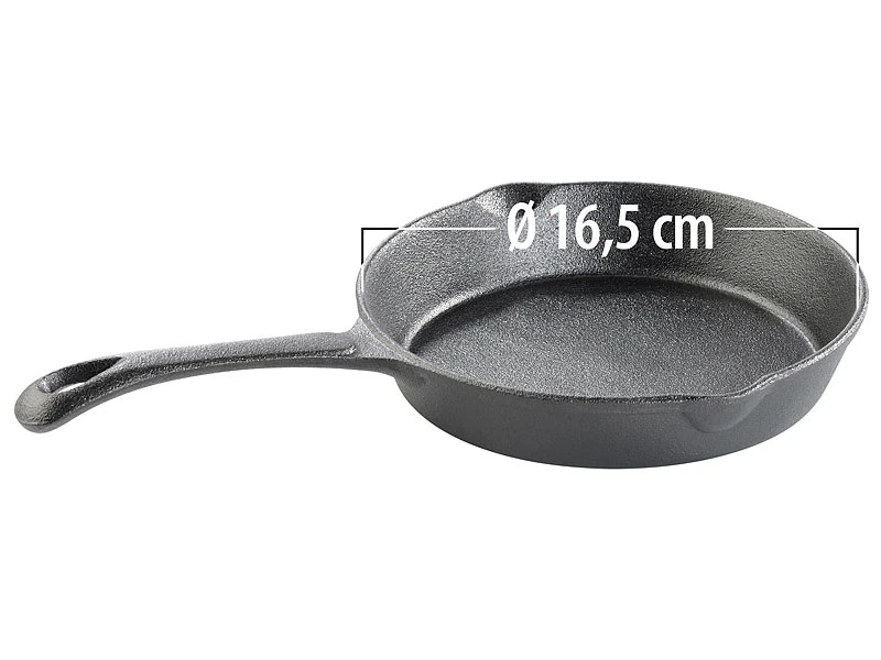 Weiterer Vorteil: Die Eisenguss-Pfanne verfügt über 2 Ausgüsse. Damit gießen Sie überschüssiges Fett einfach ab. Ohne Kleckern und Tropfen! So sparen Sie überflüssige Kalorien.