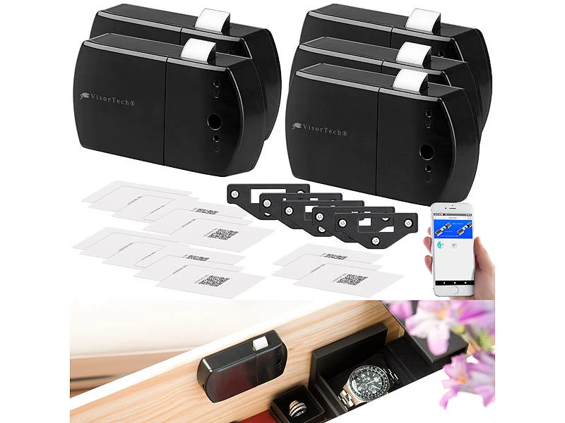 Schlüsselfrei dank RFID-Karte und kostenloser App: Zum Entriegeln nutzen Sie einfach Ihr Smartphone. Und dank einstellbarer Verriegelungs-Automatik brauchen Sie nur die Schublade oder Tür zu schließen!