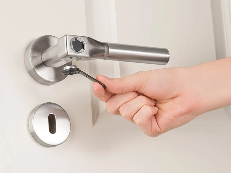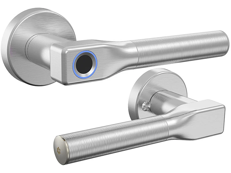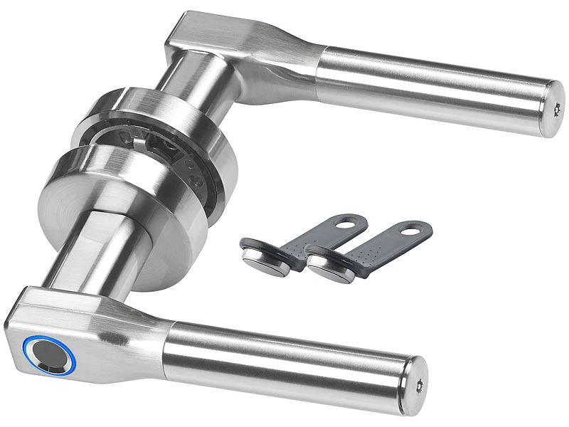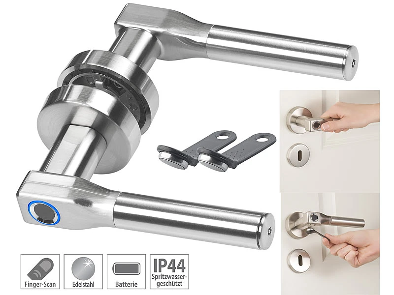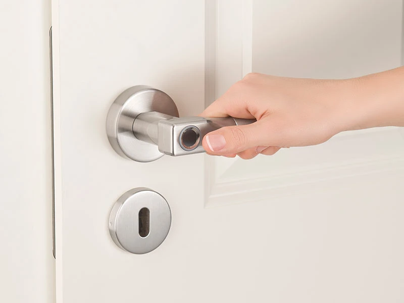 Halten Sie Ihre Tür unter Verschluss – zu Hause, im Büro oder in der Arztpraxis: Der moderne Edelstahl-Türbeschlag mit Fingerabdruck-Scanner verwehrt unbefugten Personen den Zutritt. Und macht dabei eine gute Figur!