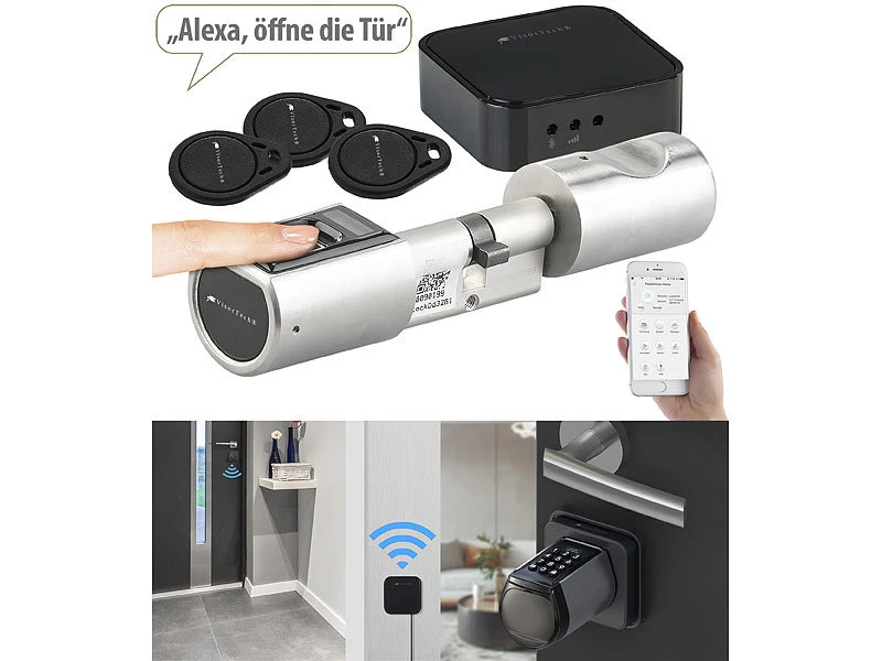 - Öffnen der Tür per Fingerabdruck, Transponder oder App
