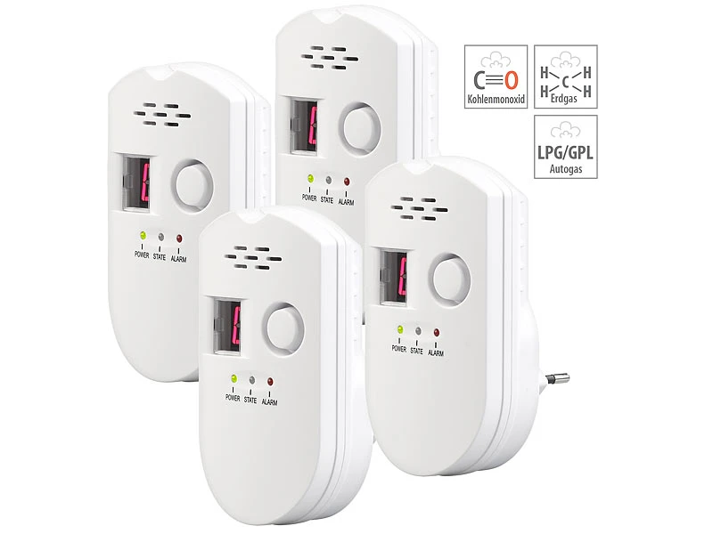 - 4er-Pack Multi-Gasmelder inkluisve deutscher Anleitung – Gasmeldeanlagen – Außerdem relevant oder passend zu: Reise, Reisen, Sensor, Kocher, CO Melder, Gaskocher, Gasflasche, Autogarage, Camping Ofen, Auto Heizung